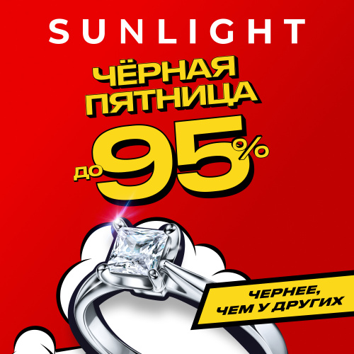 Ставим всё на чёрное, ведь в Sunlight стартовала Чёрная Пятница со скидками до 95% на все украшения. Убедитесь в этом сами в магазинах и мобильном приложении. Акция суммируется с вашими бонусами.